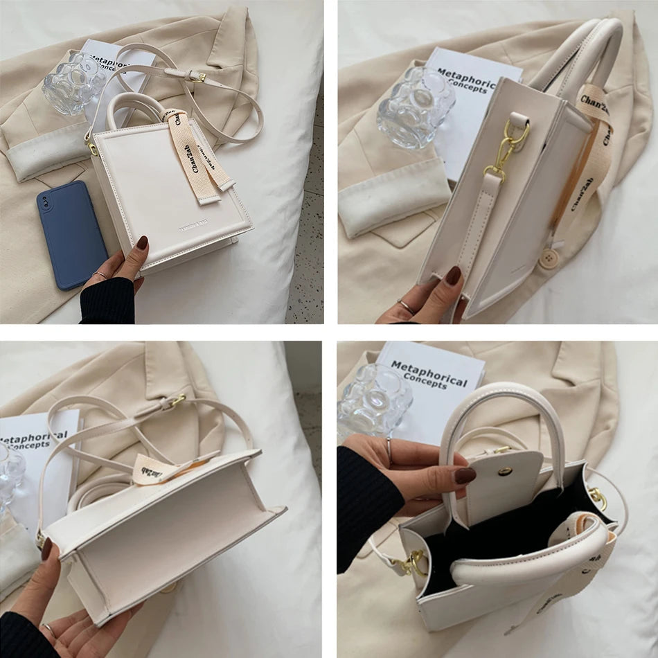 This stylish small tote bag is made of high-quality PU leather, perfect for daily use. It features a short handle and a crossbody strap for versatile wear.