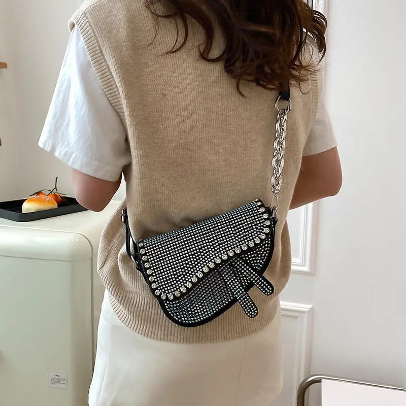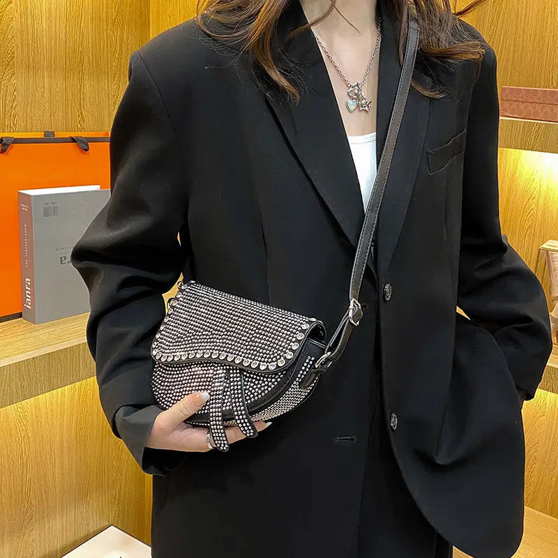 Women's Rhinestone Saddle Bag Crossbody Handbag