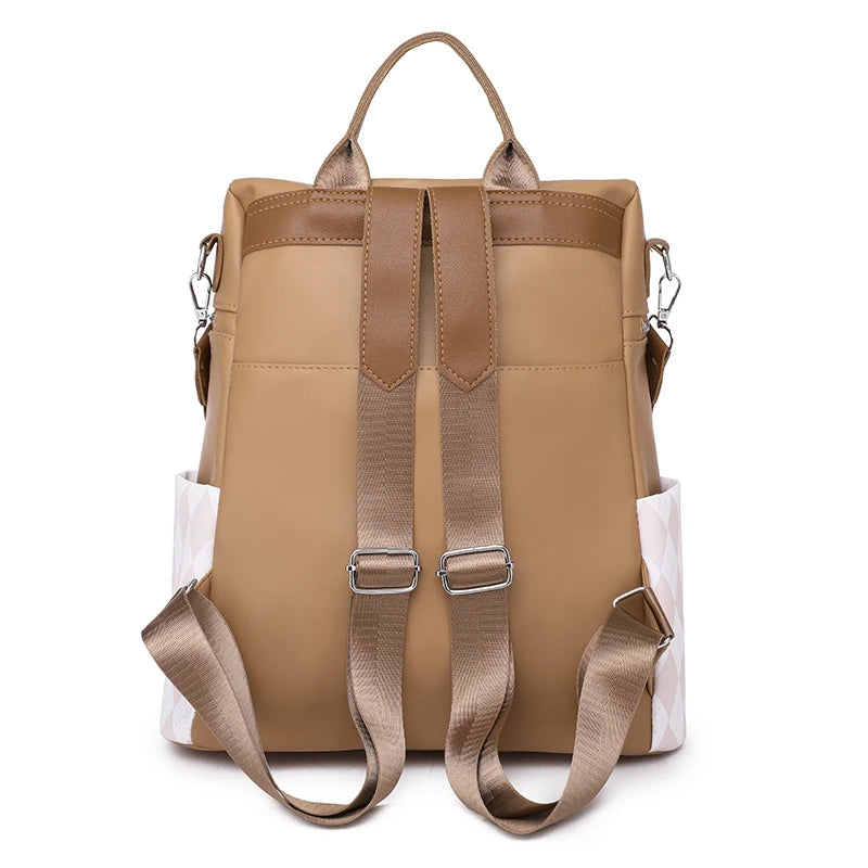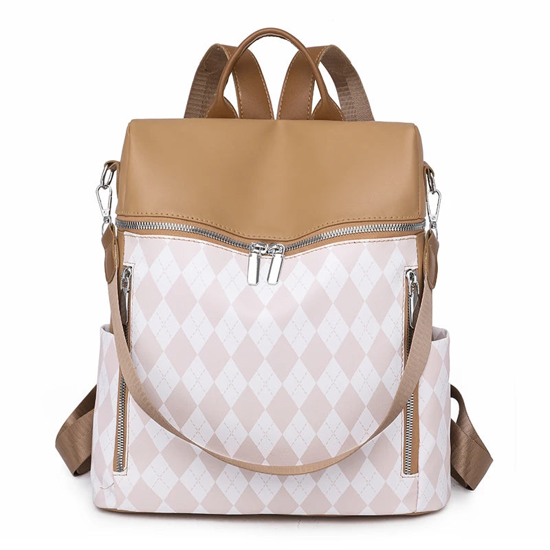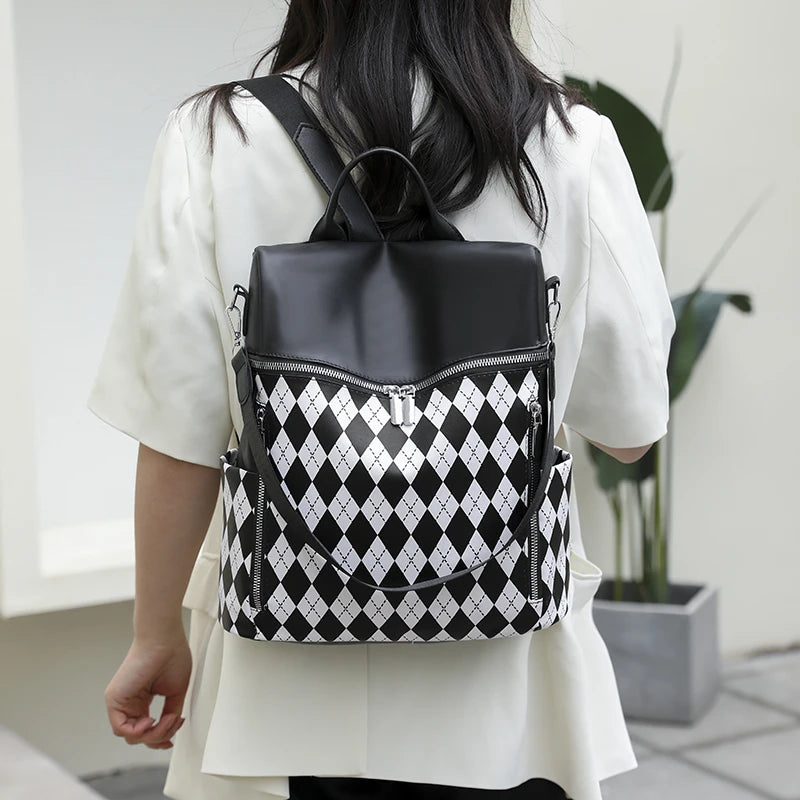 Women's Rhombus Stitching Pattern Backpack - Multi-functional PU Backpack