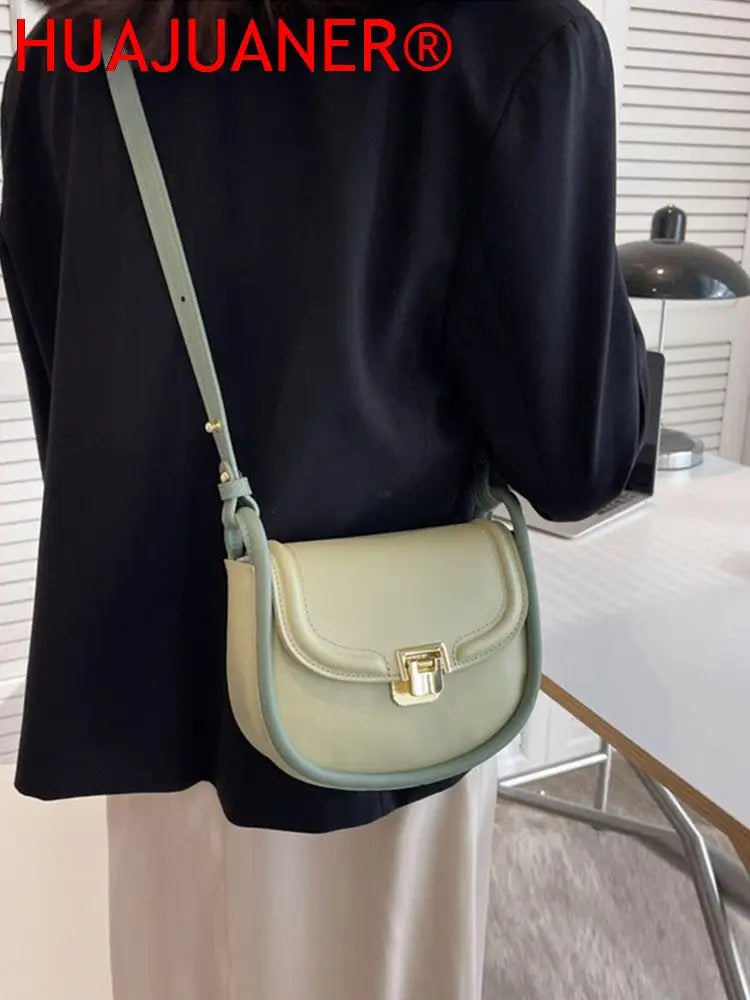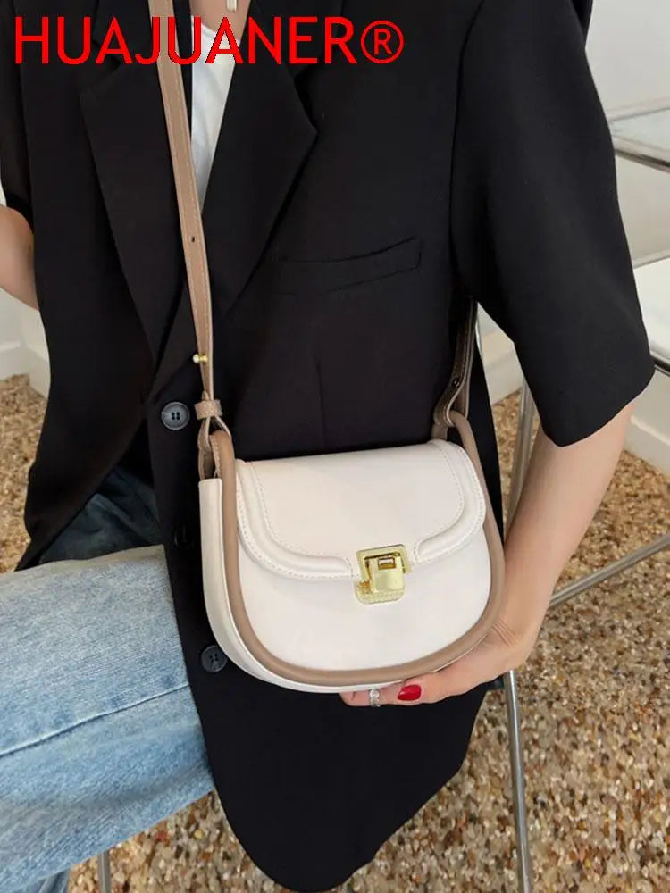 This women's bag features a contrast design with a saddle shoulder style, made of durable PU leather, perfect for everyday use.