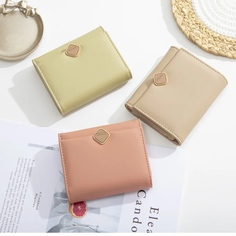 Stay organized with this stylish women's short three-fold buckle wallet. It features a solid color design and offers zero bulk for convenient carrying.