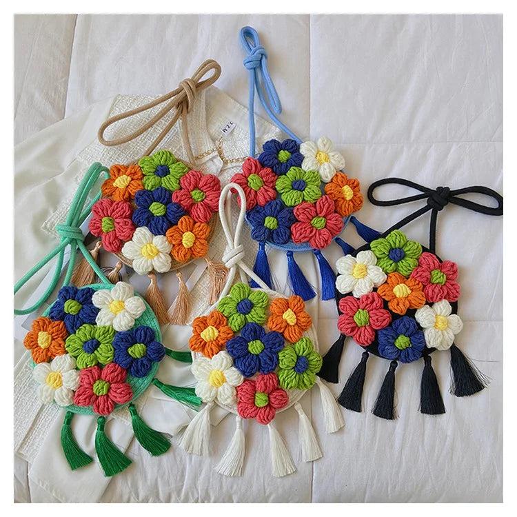 Women's Shoulder Bag Flower Tassel Decorated Crossbody Beach Travel Bag