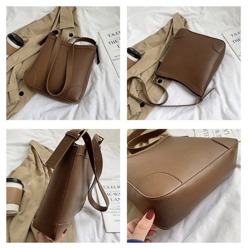 This stylish handbag is crafted from high-quality PU leather with a spacious interior. It features an adjustable shoulder strap for comfortable carrying.