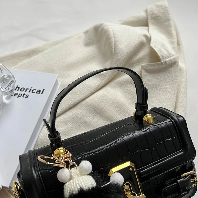This women's shoulder bag is a stylish and practical accessory. Made of PU material, it's perfect for work or casual use. Featuring a fur pendant, it adds a touch of luxury to your outfit.