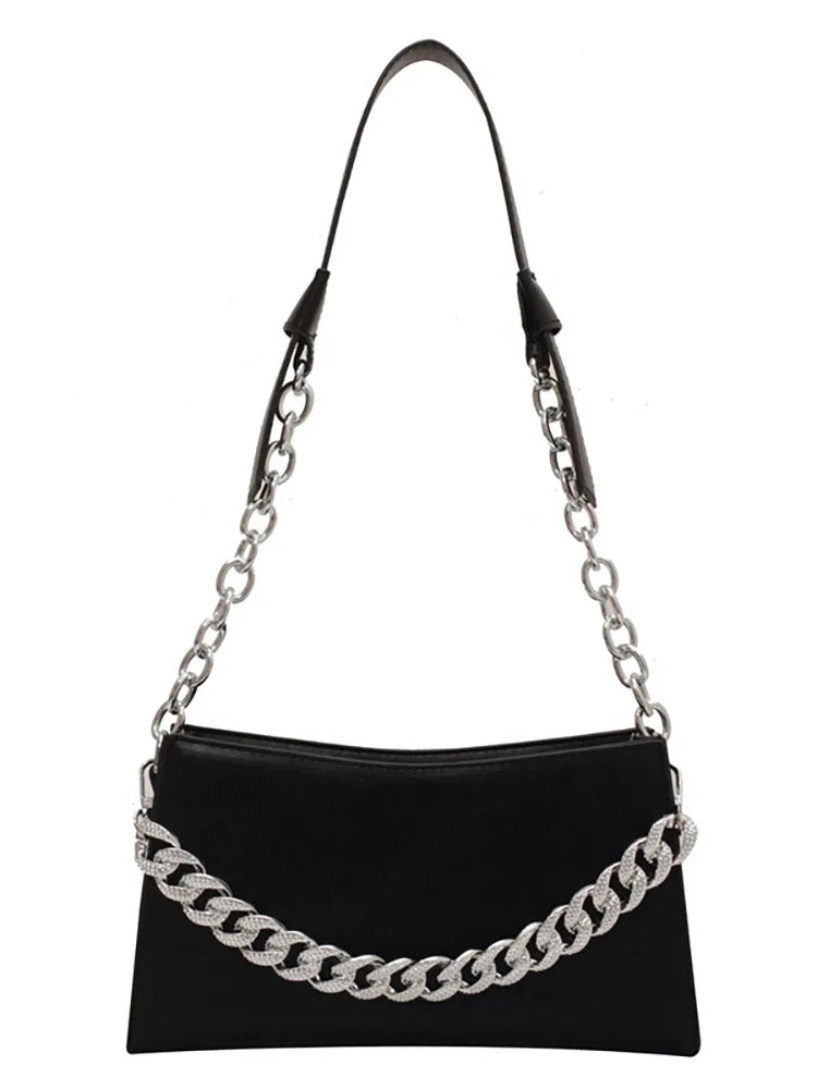 Elegant and stylish women's shoulder bag made of high-quality PU leather. This bag features a top handle and chain crossbody strap, perfect for any occasion.