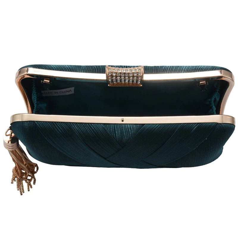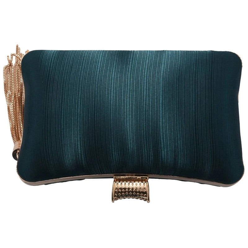 Women's Silk Satin Evening Clutch Bag with Tassel Pendant