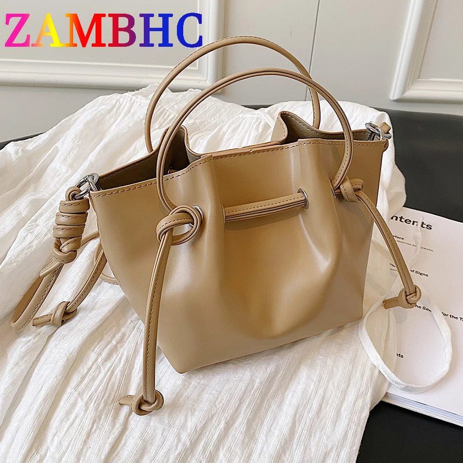 Women's Small Bucket Bag PU Leather Handbags Tote Crossbody Solid