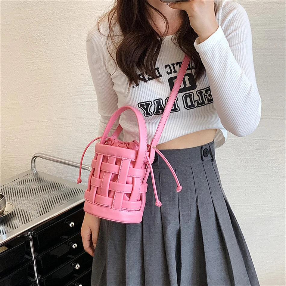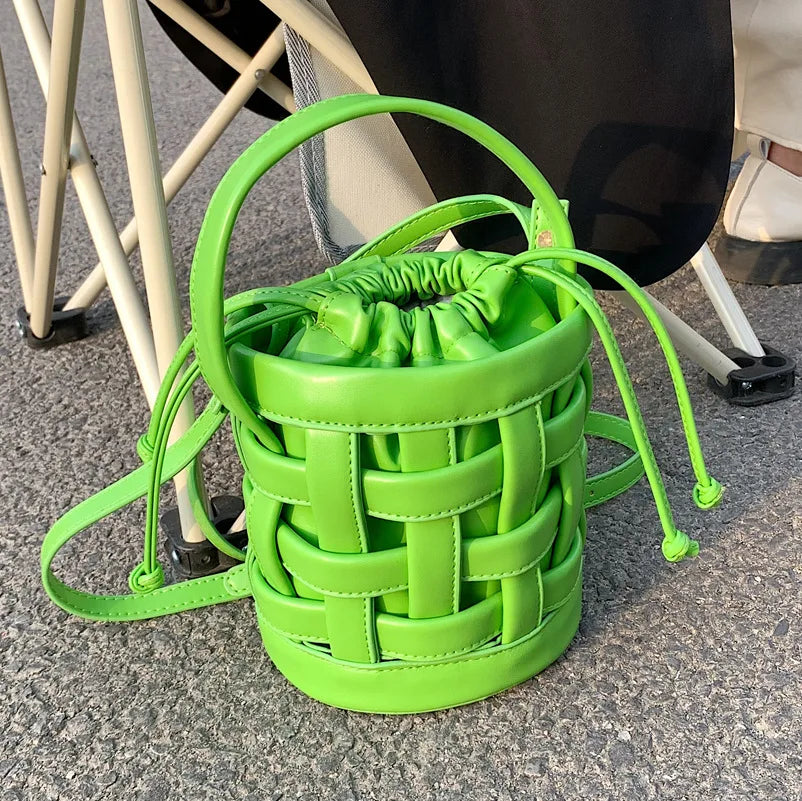 This stylish bucket bag is made of high-quality soft leather, featuring a side shoulder design for a trendy look. Perfect for everyday use as a crossbody or tote bag.