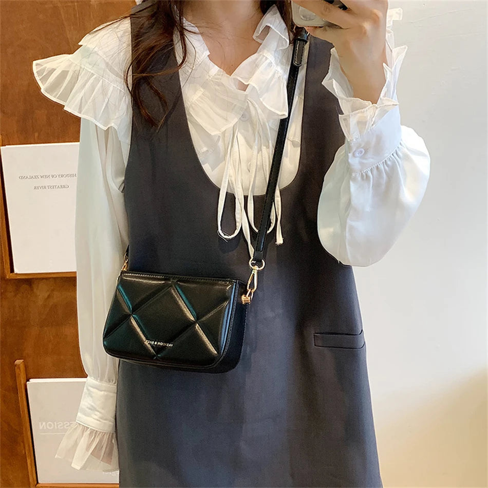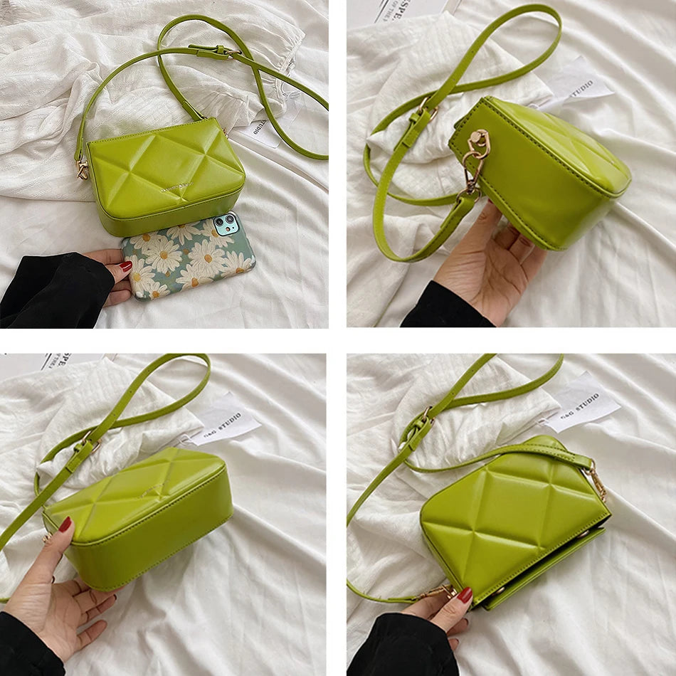 Stay stylish with this small crossbody bag made of PU leather. It features a chic lingge design and is perfect for women on the go.