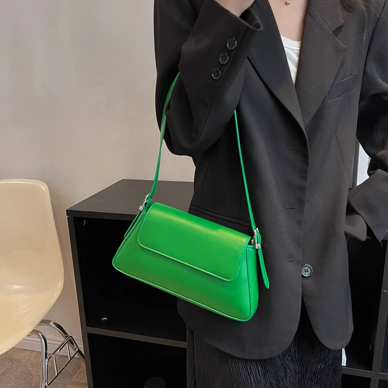 This women's shoulder bag is made of high-quality PU leather. It features a chain design and is perfect for everyday use. Available in 6 different colors.