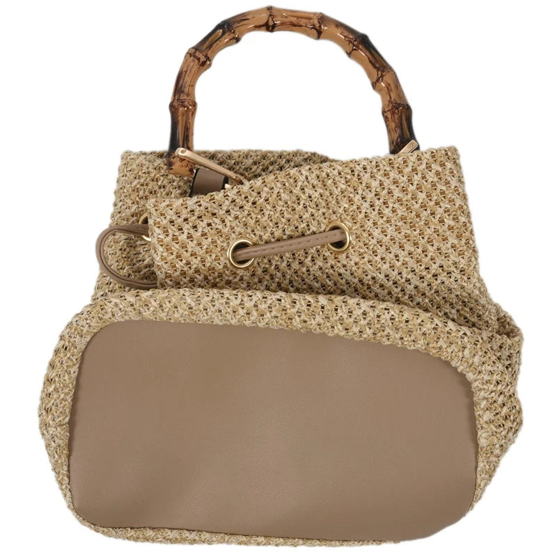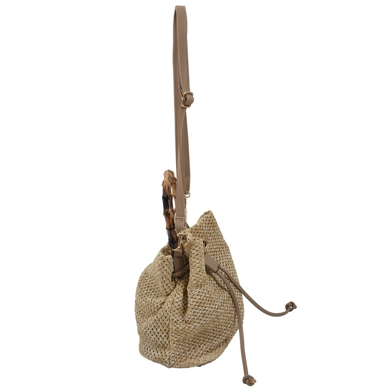 Women's Straw Bucket Bag Woven Shoulder Bags Shopping Purse Beach Handbag