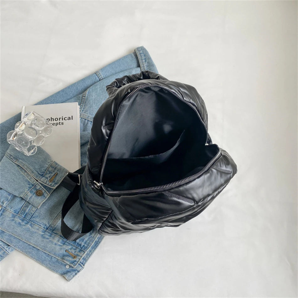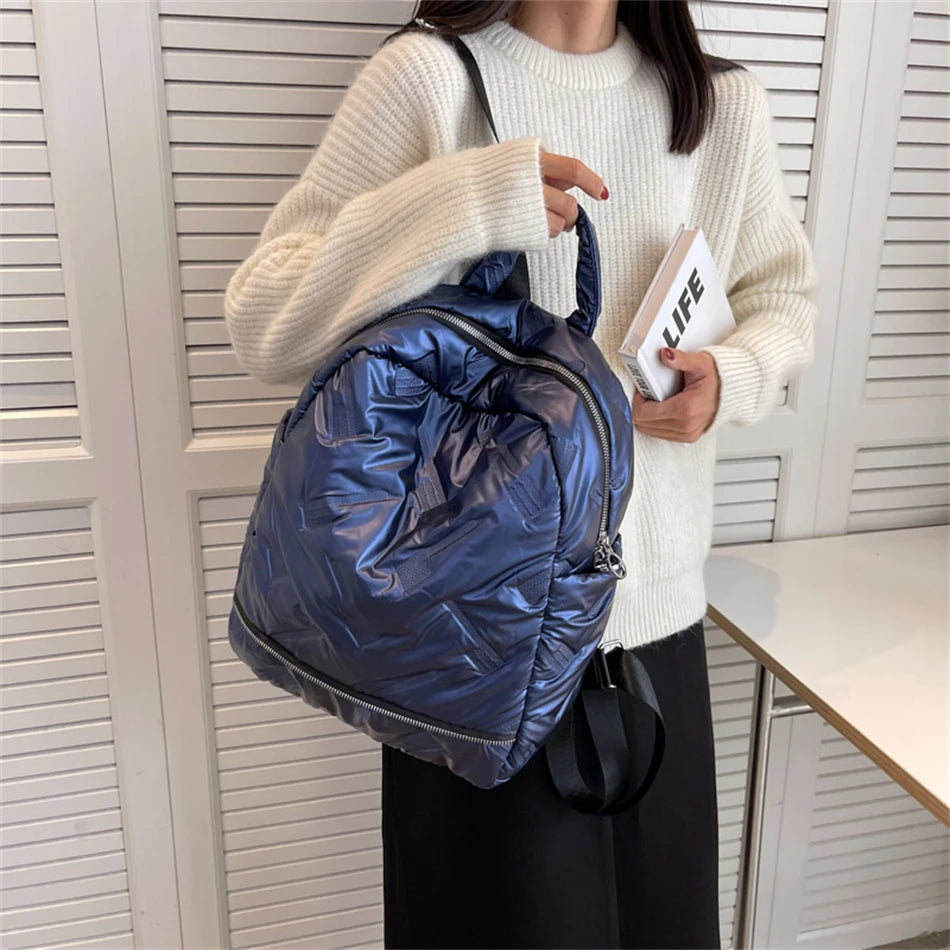 Women's Stripe Space Backpack Down Fabric Cotton Backpacks for Teenager Girls