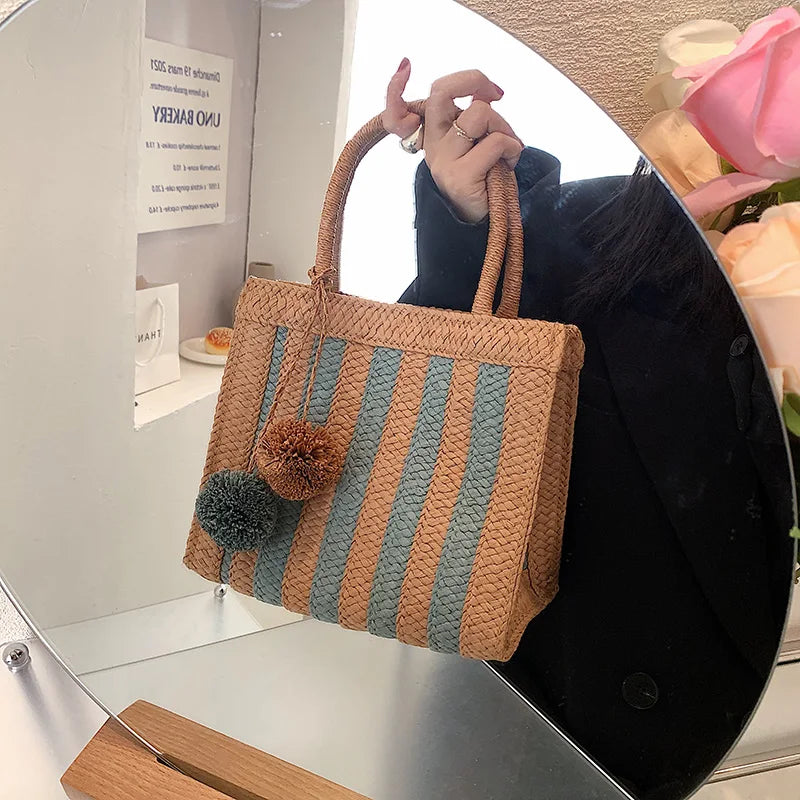 Get ready for a Roman vacation with this stylish straw tote handbag. Perfect for summer days and beach outings.