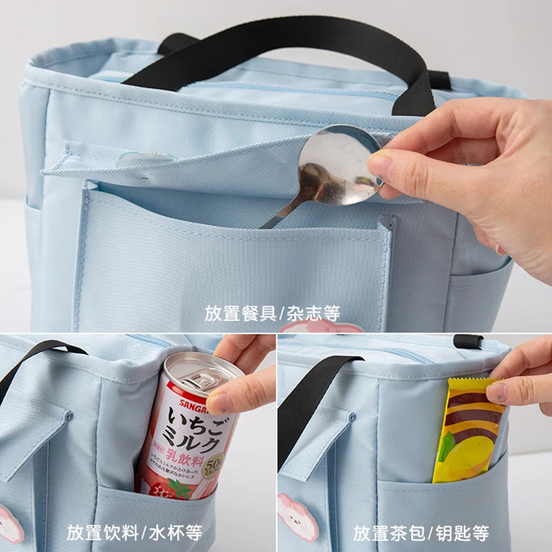Women's Thermal Lunch Bag Large Tote Food Picnic Badge Portable Bags