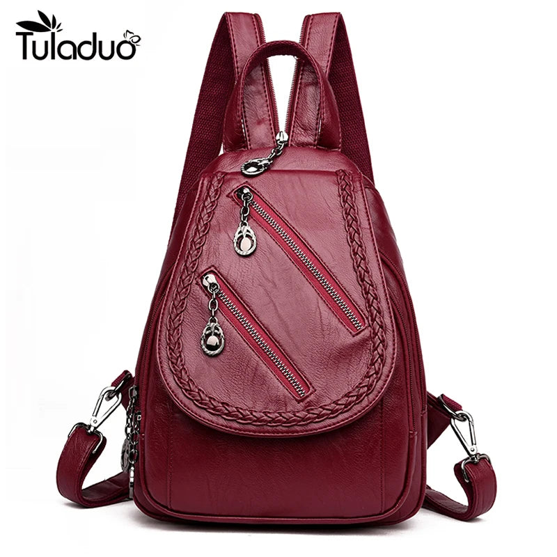 Women's Travel Backpack Shoulder Bag Casual Chest Bag Pu Leather