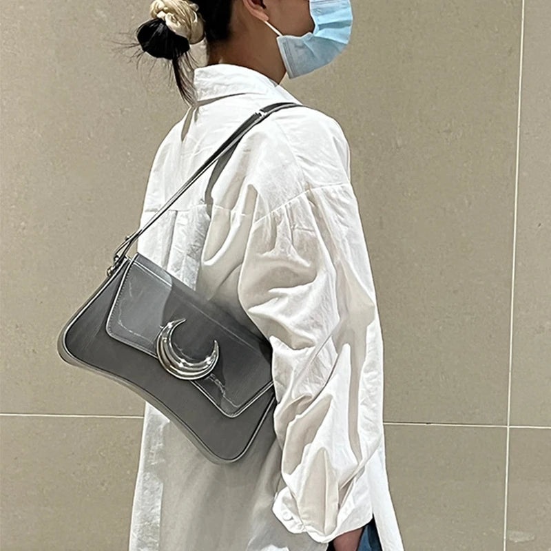 Women's Vintage Texture Chain Shoulder Bag Gradual Change Moon Handbag