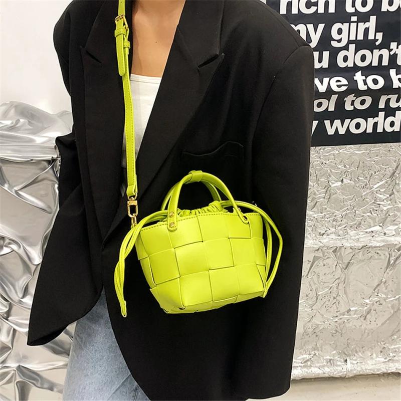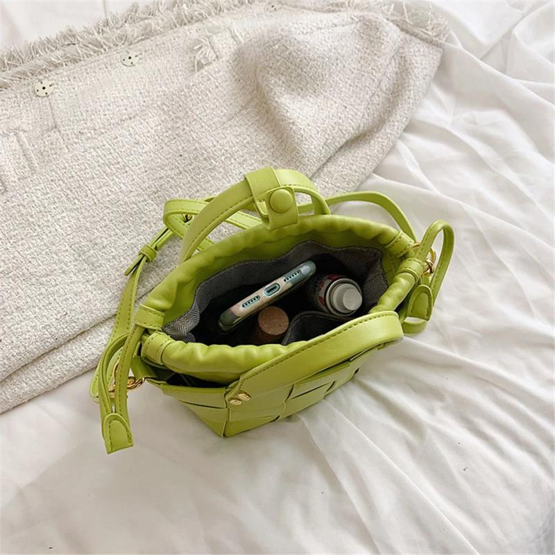 Elegant and practical, this women's bucket bag is made of high-quality weave PU leather. It features a spacious interior and can be carried as a shoulder bag or crossbody style.