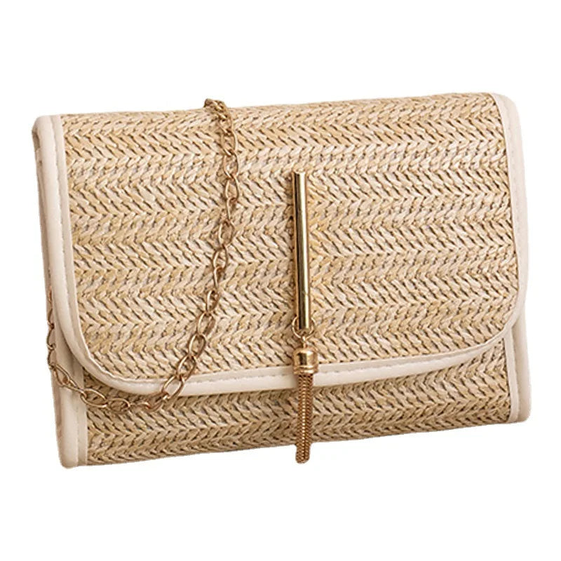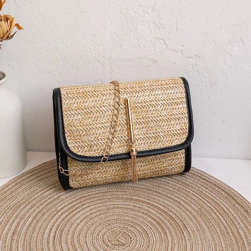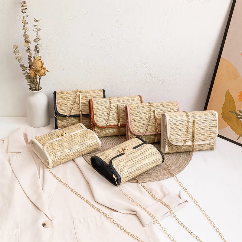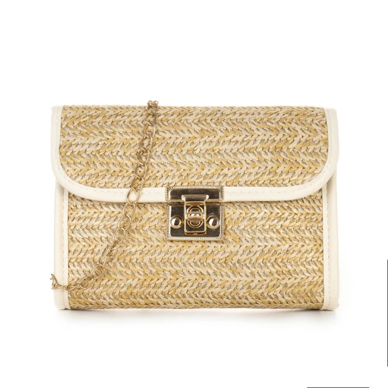Stay stylish on-the-go with this chic woven straw bag. Perfect for carrying your phone and essentials.