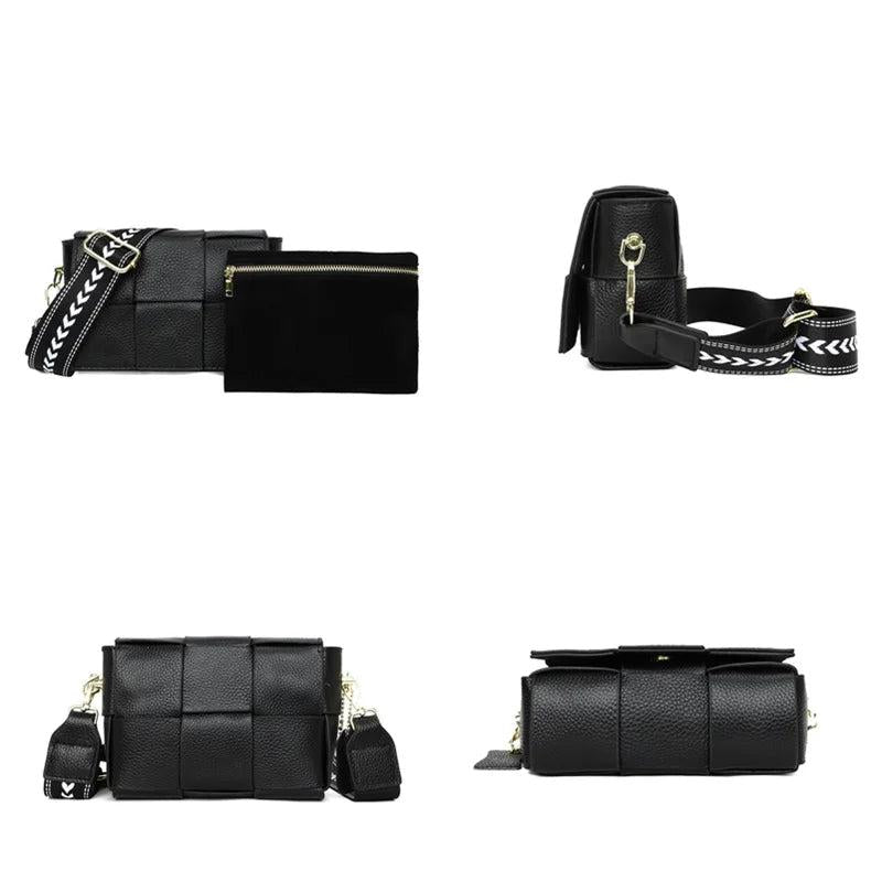 Woven Cow Leather Crossbody Bag Wide Straps Handbags