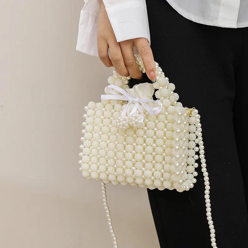 Woven Pearls Bag Shoulder Bags for Women Small Beading Handbags