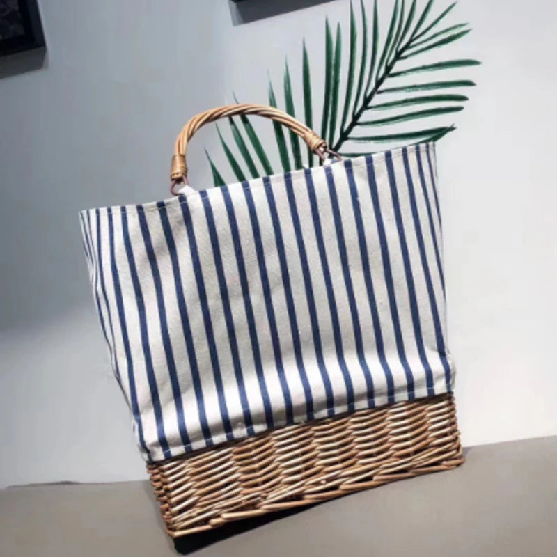 Woven Straw Bag Rattan Handbag Canvas Women Handbag