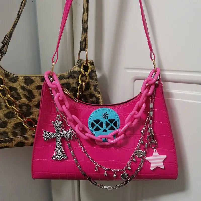 Y2k Cross Punk Shoulder Bag Pink Handbag