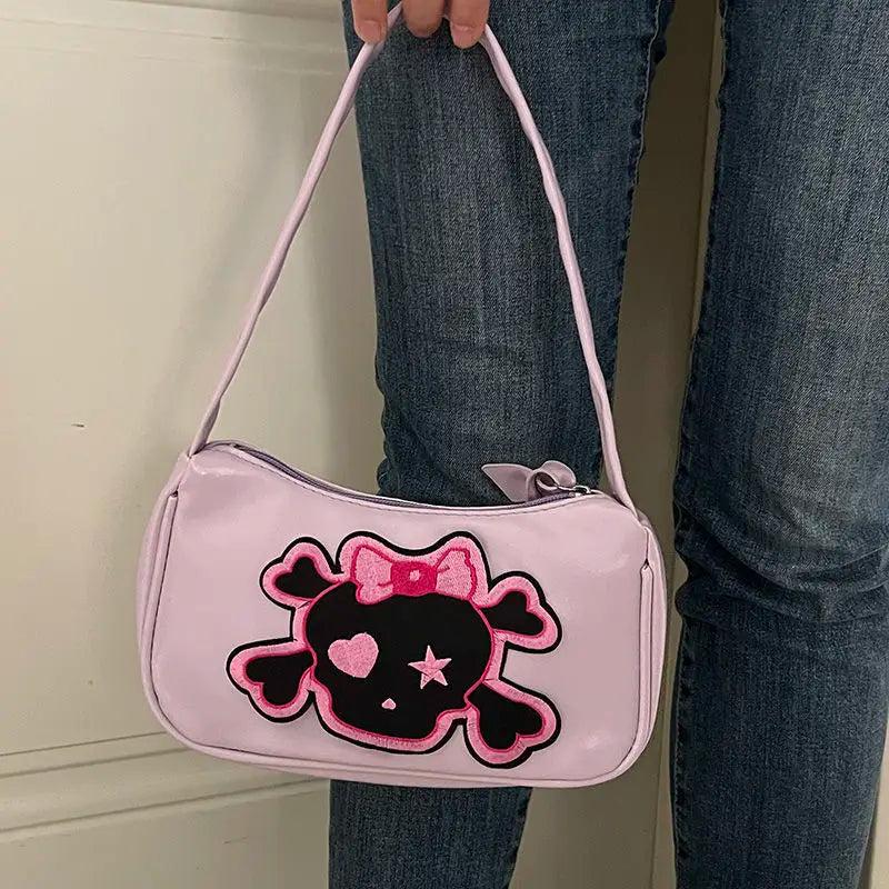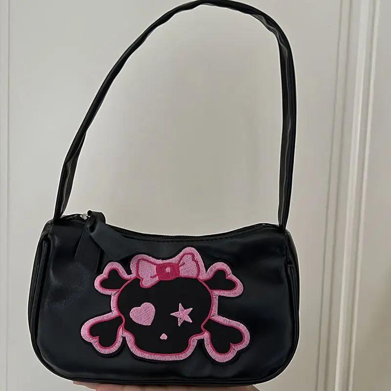 Stay stylish with this Y2k Gothic shoulder bag featuring a skull design. Made of high-quality PU leather, it features a zipper closure for secure storage. Perfect for girls and women.