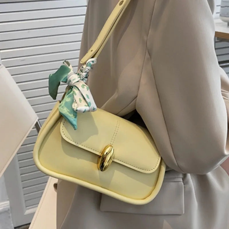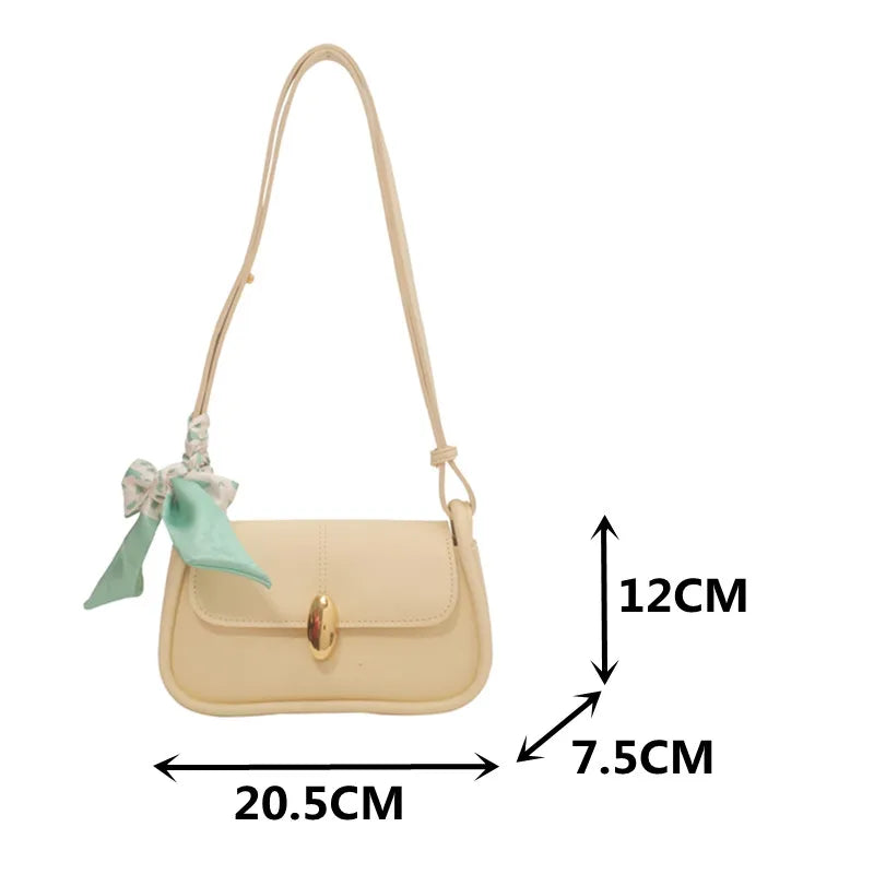Stay stylish with this soft leather shoulder bag featuring a silk scarf detail. Perfect size for essentials.