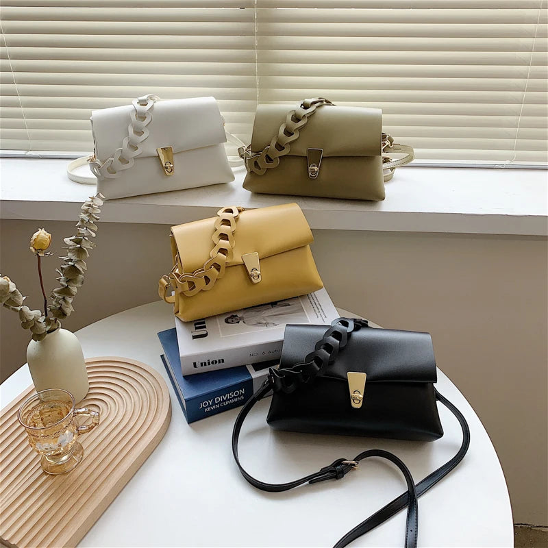 This stylish yellow leather shoulder bag is perfect for women on-the-go. It features a flap closure, a spacious interior, and an adjustable crossbody strap for added convenience.