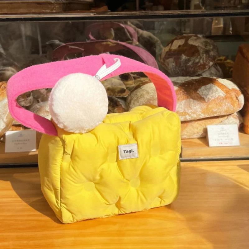 Stay stylish and cozy with this yellow handbag made of soft plush material. Perfect for winter, it features a small square design that adds a trendy touch to any outfit.