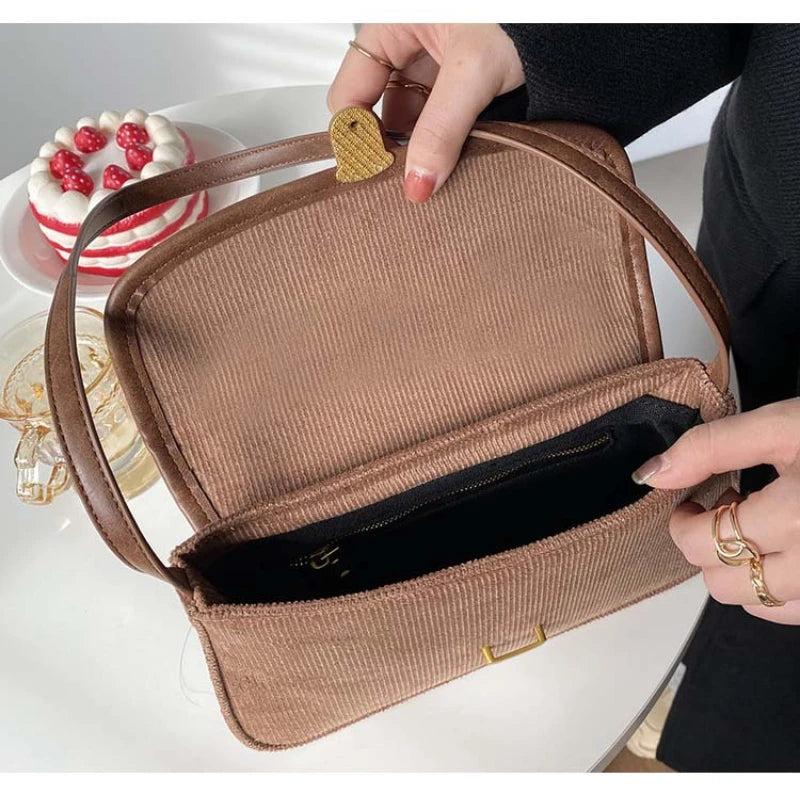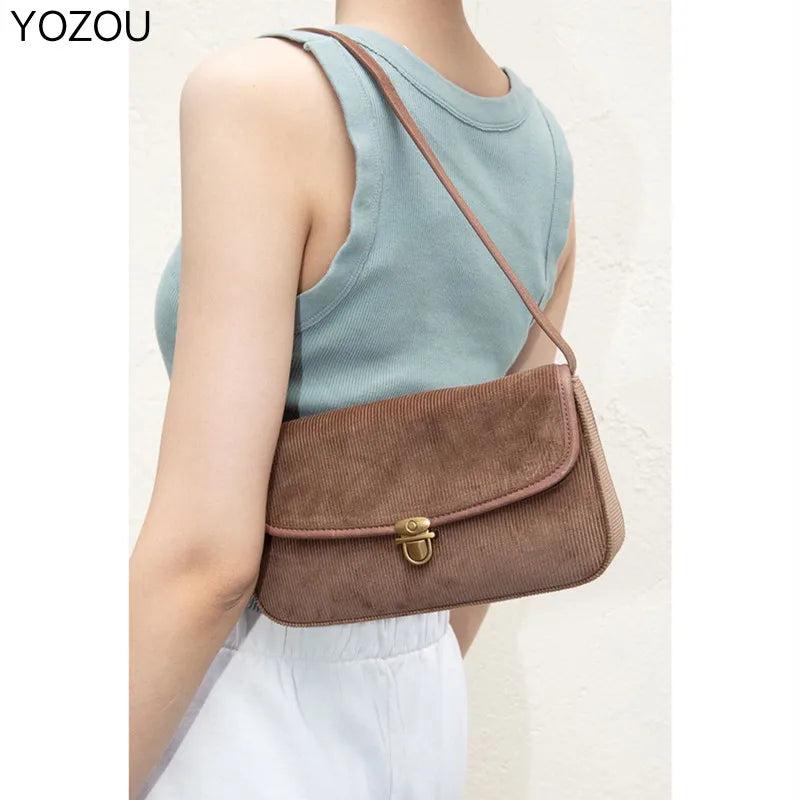 YOZOU Brown Corduroy Handbags Wallet Shoulder Bag Brandy Beach Holiday