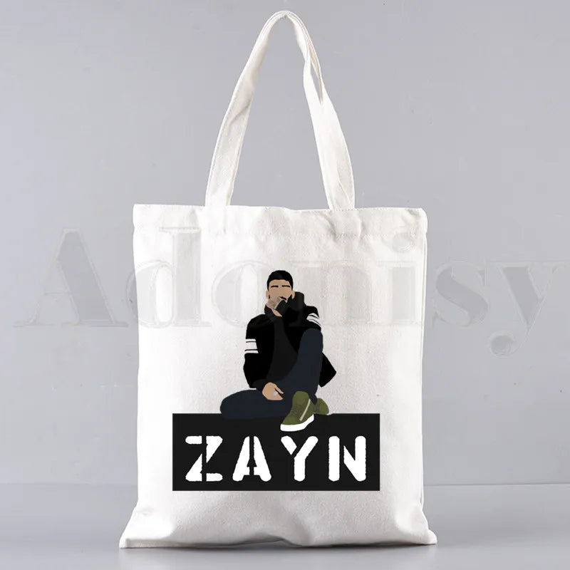 This casual canvas bag features a trendy design inspired by Zayn Malik's album Nobody Is Listening. Perfect for shopping or everyday use.