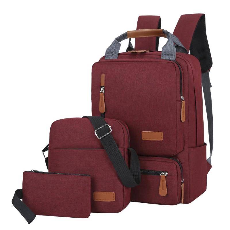 This 3-piece backpack set includes a laptop backpack, small pocket shoulder bag, and a large canvas backpack. Ideal for school, business, work, and travel.