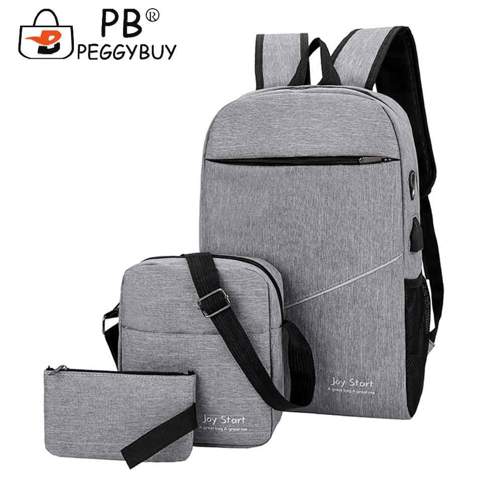 3pcs/set Travel Nylon Backpacks Messenger Bags Unisex School Bag Clutch Bookbag