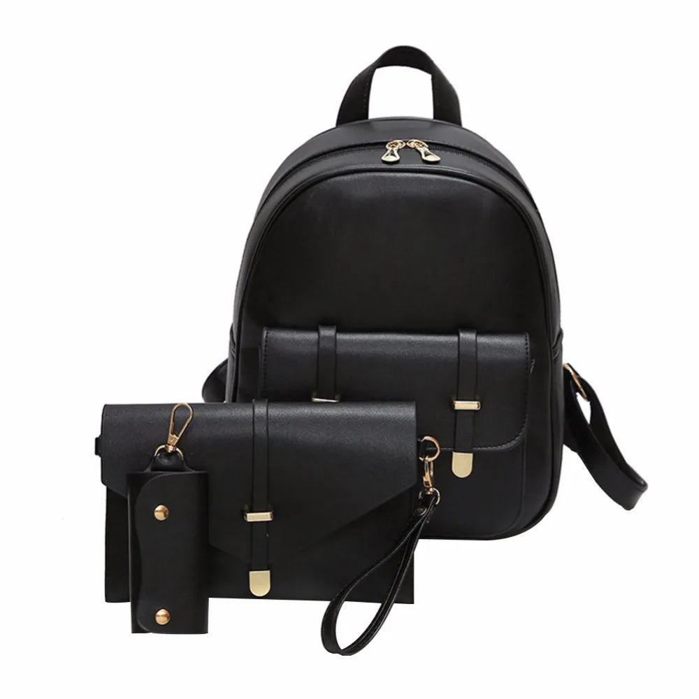 Get this stylish 3pcs set of women's PU leather backpack that includes small backpacks and a lady composite bag. Perfect for everyday use.