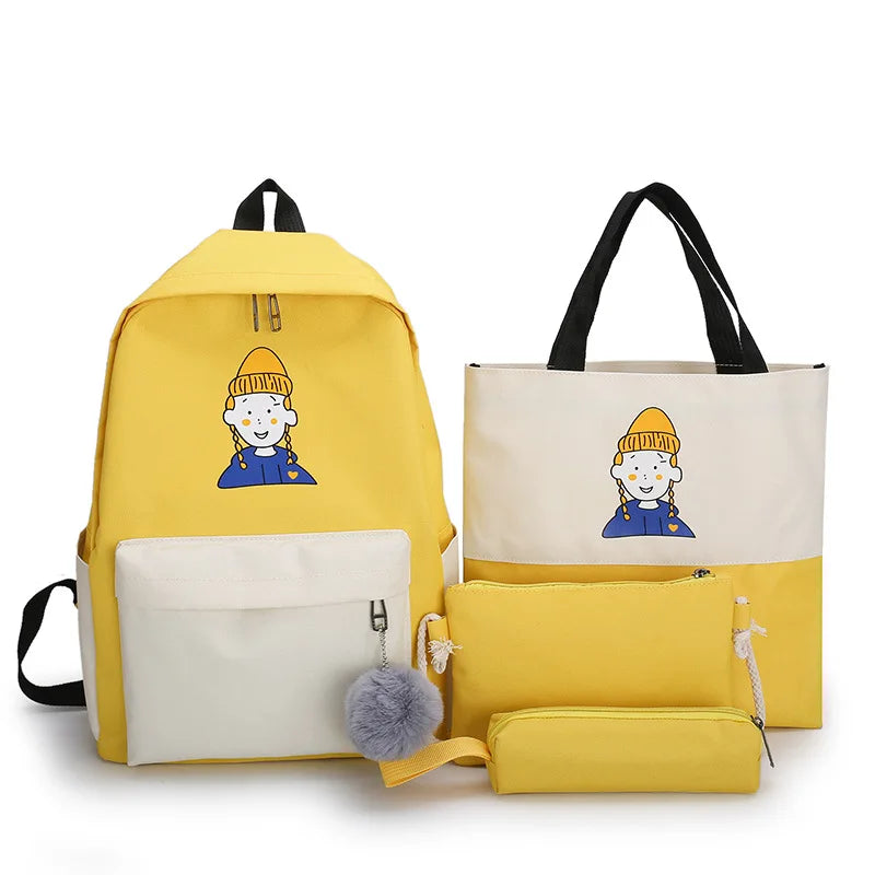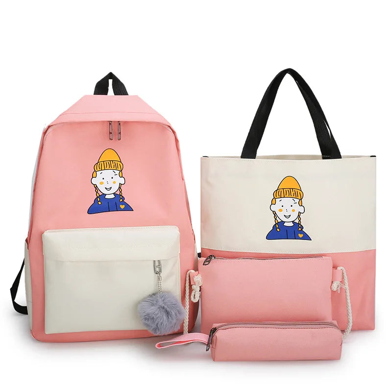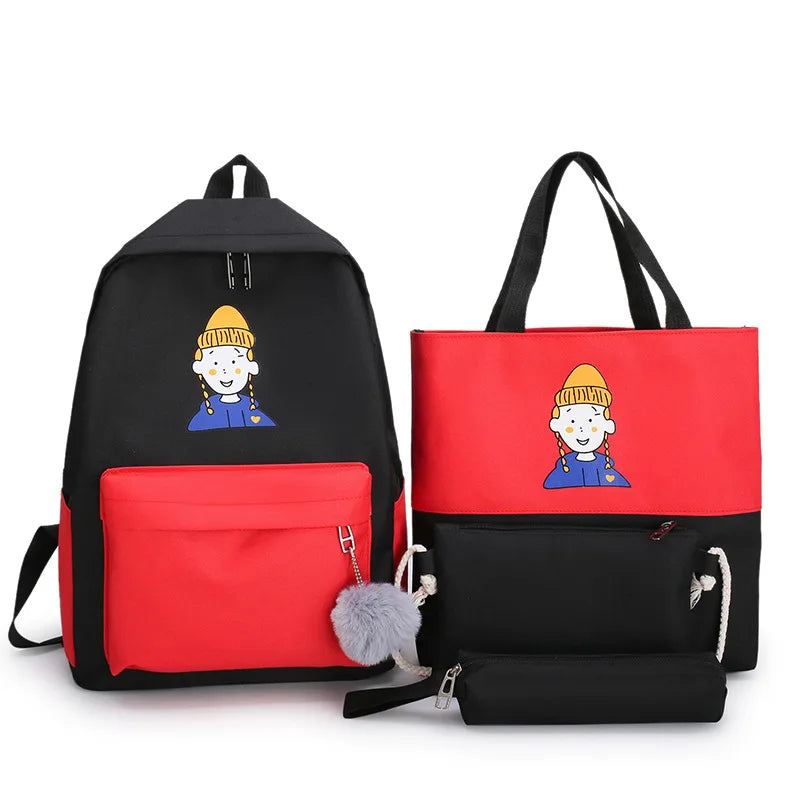 4Pcs Women School Patchwork Backpacks Girls Student Book Bag Boys Bolsas Sac