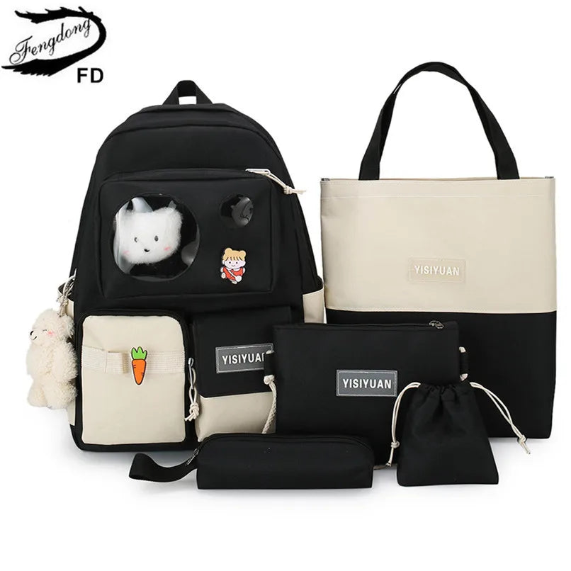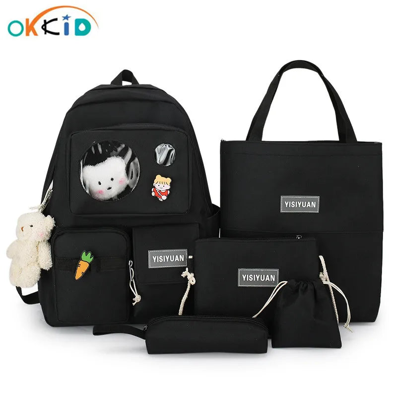 6pcs School Bags For Teenage Girls Kids College Student Laptop Backpack