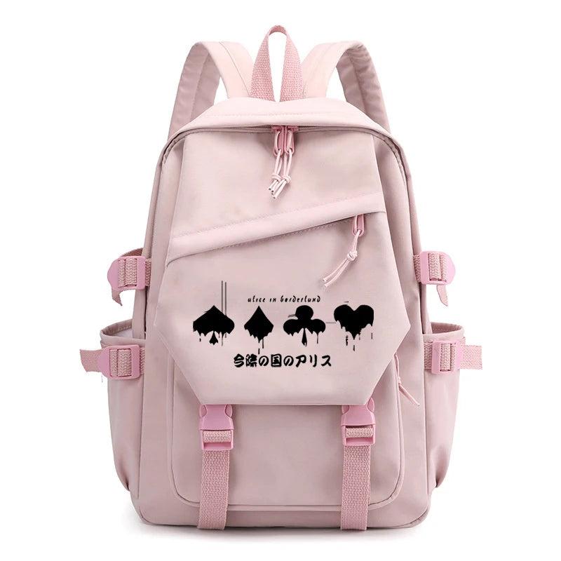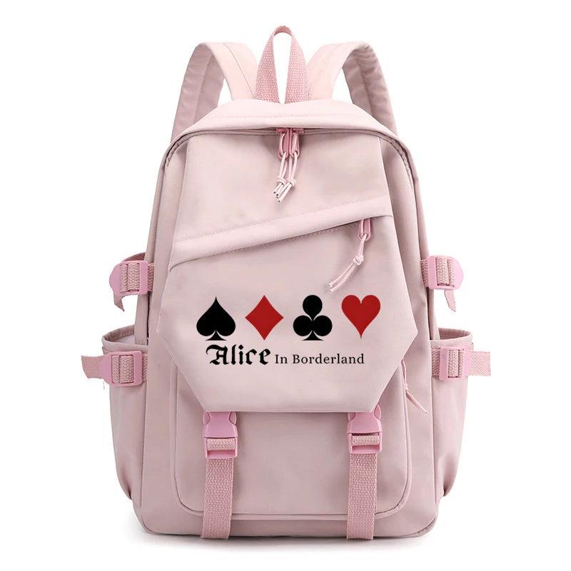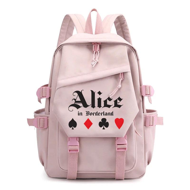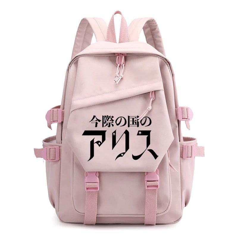 This backpack features a design inspired by the survival game theme of Alice In Borderland. Perfect for students and fans of the series.