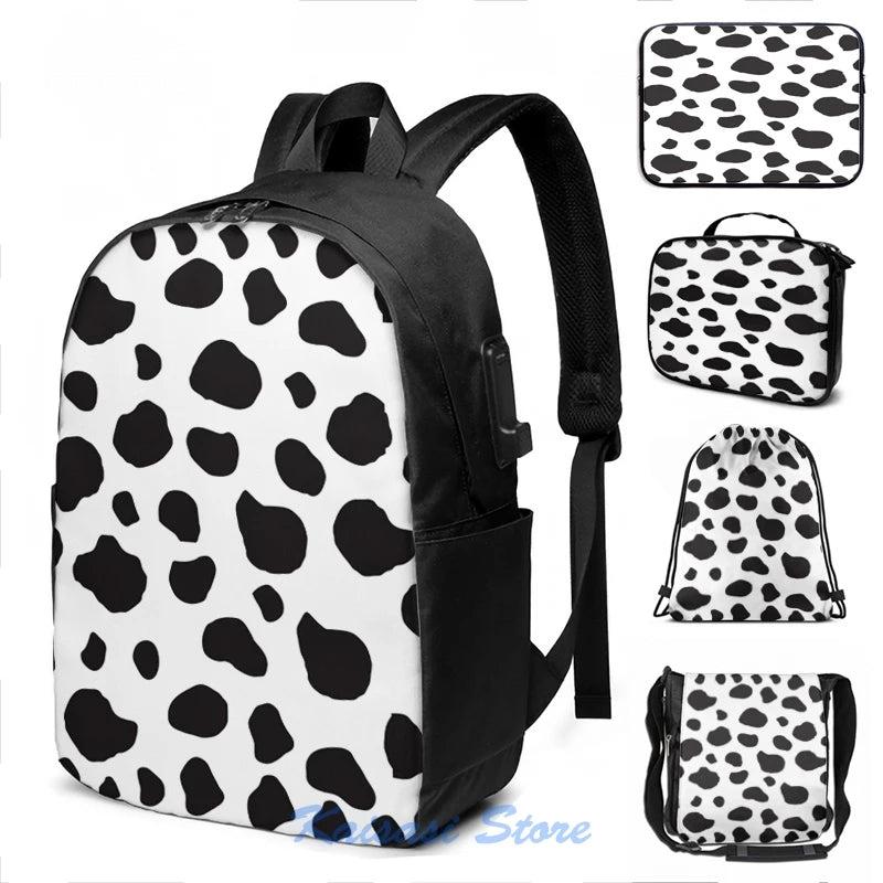 Animal Print Cow Spots USB Charge Backpack School Travel Laptop Bag