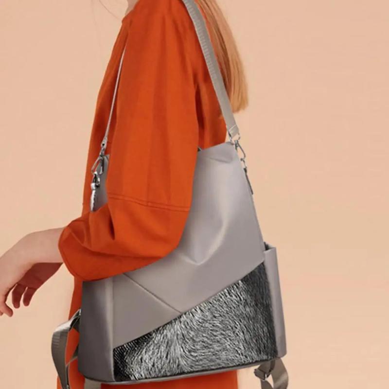 Stay safe and stylish with this anti-theft backpack designed for travel, school, and everyday use. Features a sleek patchwork design.