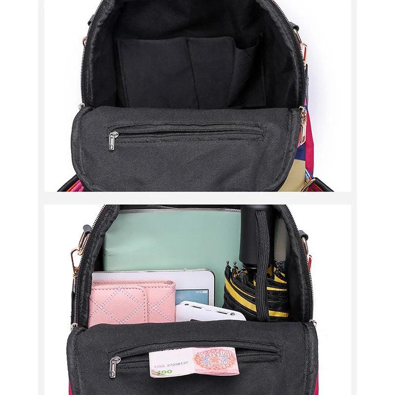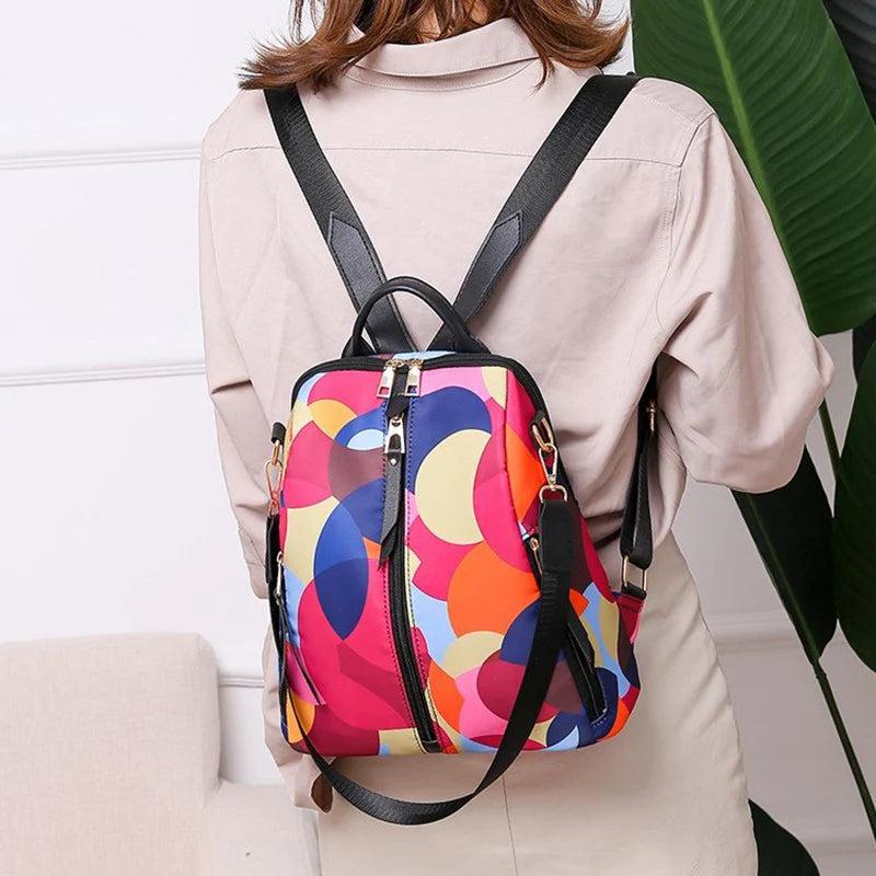 Stay stylish and secure with this anti-theft backpack designed for women. Made of colorful Oxford cloth, perfect for travel and everyday use.