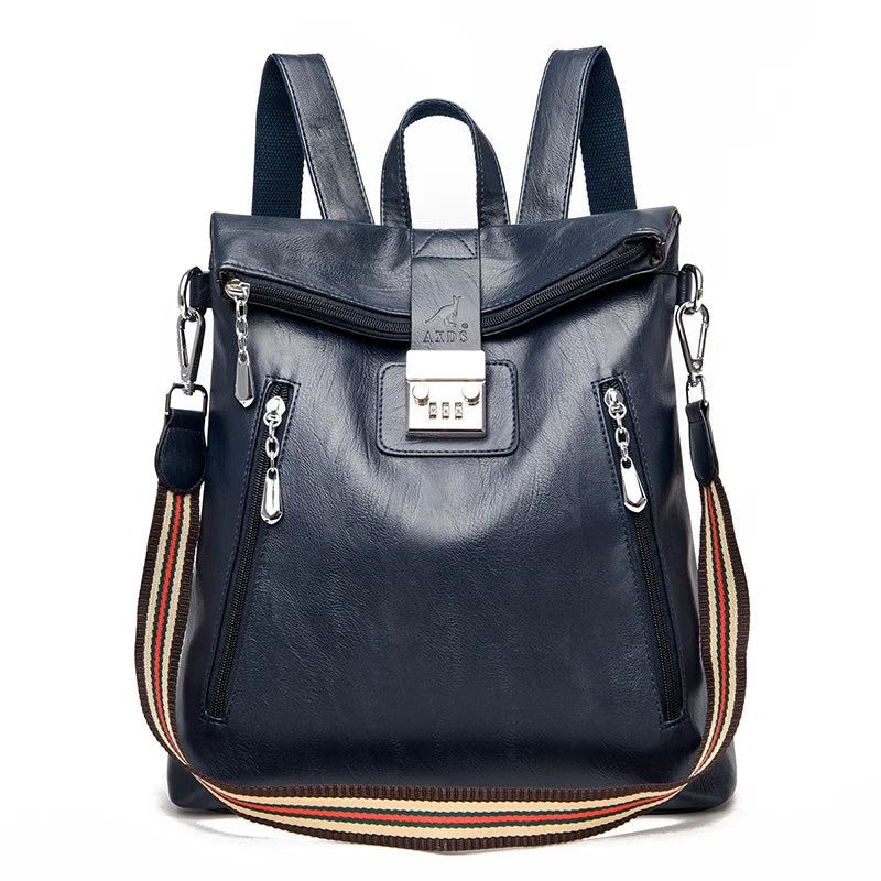 Stay stylish and secure with this multifunctional anti-theft backpack. Crafted from high-quality leather, it is perfect for school, travel, and daily use.