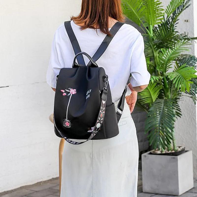 Anti Theft Oxford Backpacks for Women with Chinese Style Embroidery