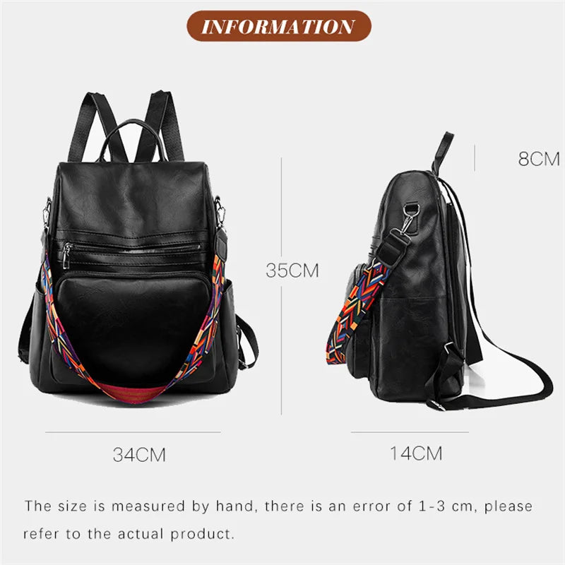 Anti-theft PU Leather Women Bags Waterproof Casual Red Travel Backpack