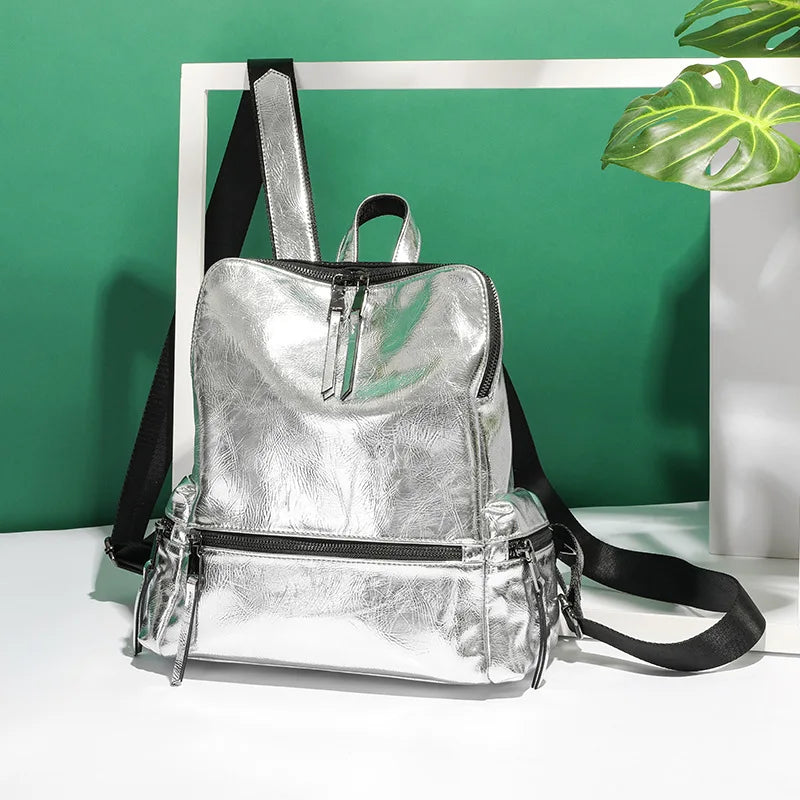 Anti-theft School Shoulder Bag Casual Women Backpack Reflective Silver