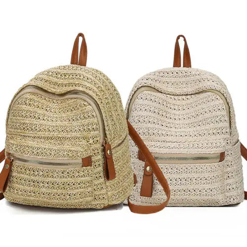 Anti-Theft Straw Mini Backpack Summer Shoulder Bag Girls Weave Hollow Beach Bag
