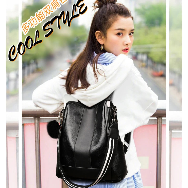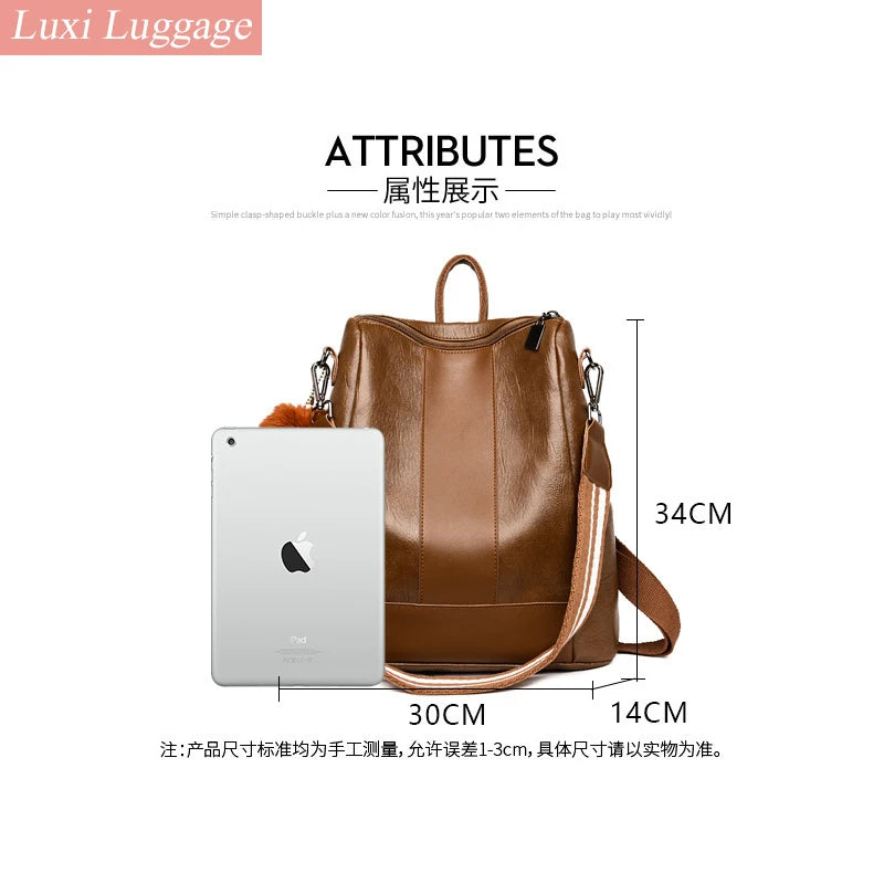 This stylish and functional women's backpack is made of high-quality PU leather and features anti-theft technology. It's perfect for travel, school, or everyday use.