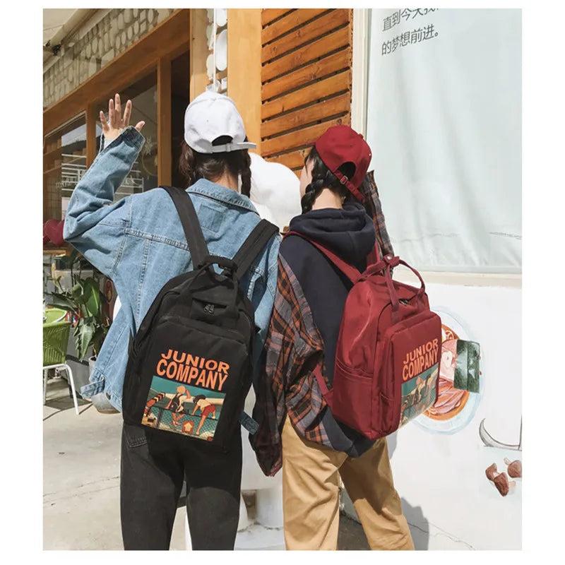 Stay stylish and organized with this waterproof backpack featuring retro cartoon printing, made of durable nylon.