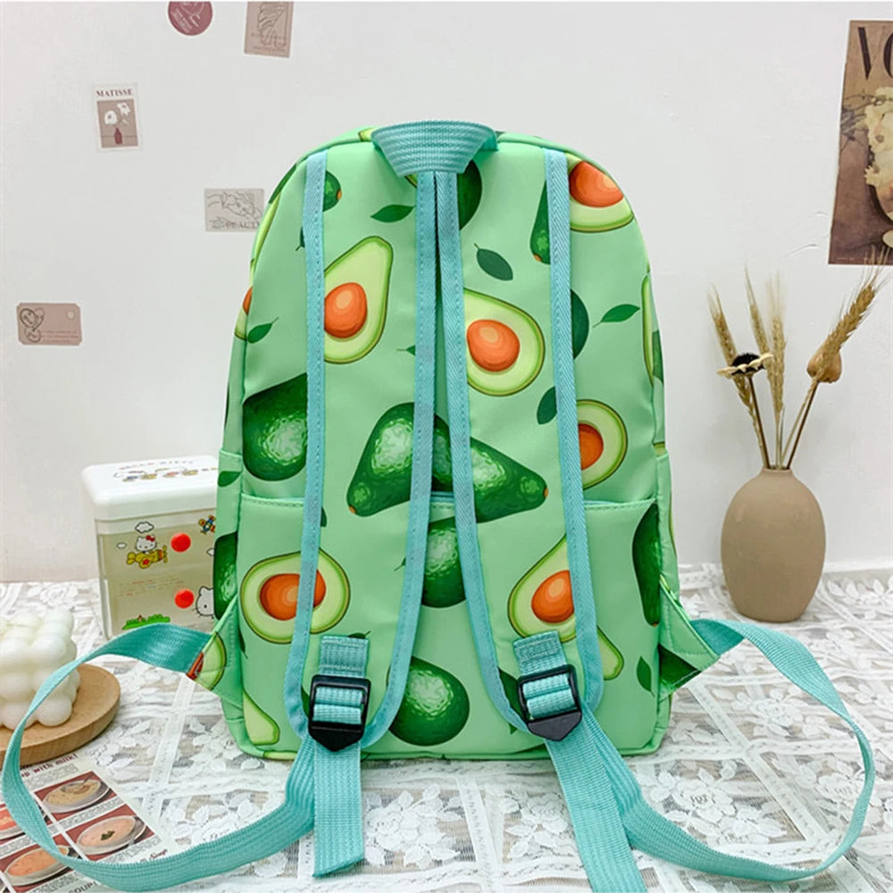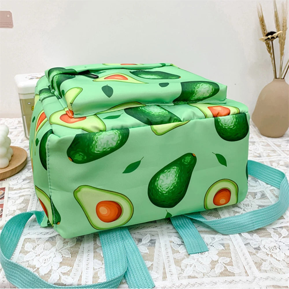 This stylish canvas backpack features a fun avocado pattern, making it perfect for casual travel or everyday use. With its large capacity, it can hold all your essentials with ease.