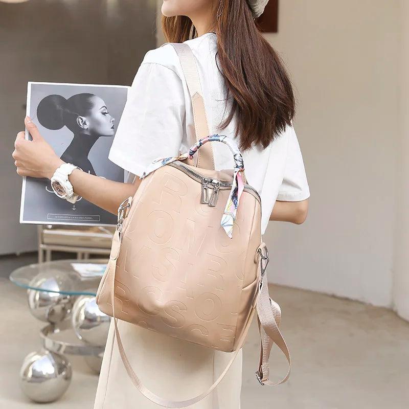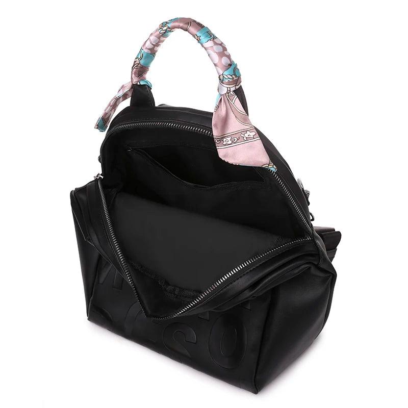 Backpacks Pu Leather Purpose Travel Women Shoulder Bag Letter Ribbon Daypack